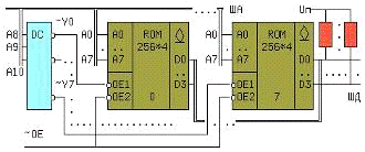 блок ПЗУ ємністю 2K*4, то буде потрібно 8 мікросхем 256*4 типу 541РТ1 і один