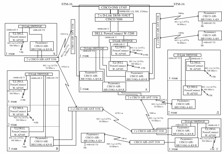 доступа), D-Link (гигабитные коммутаторы) и Cisco (маршрутизатор, радиомосты,