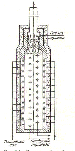 пиролиза (пирозмеевики), обогреваемые теплом сгорания топливного газа на