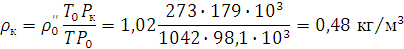 Плотность парогазовой смеси в конце реакционного