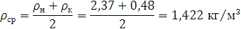 Средняя плотность смеси в реакционном змеевике: