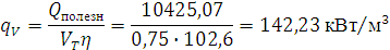 Теплонапряжение топочного объема печи: