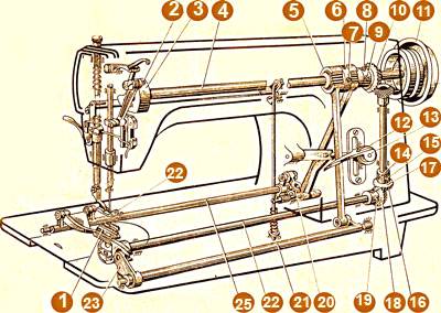 двигателя ткни с прижимной лапкой. Все механизмы приводятся в движение от