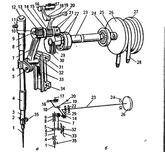 Механизм иглы (рис. 17). В принципе он не отличается от аналогичного