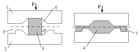 штампах (рисунок 1). В открытом штампе избыток металла выдавливается наружу (в