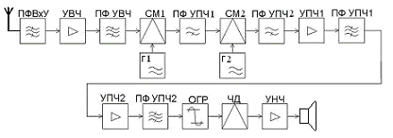 разработано радиоприемное устройство по супергетеродинной схеме, которая