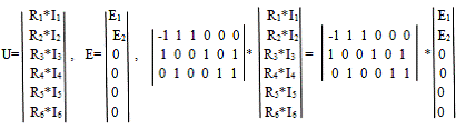 уравнения по законам Кирхгофа в алгебраической и матричной формах