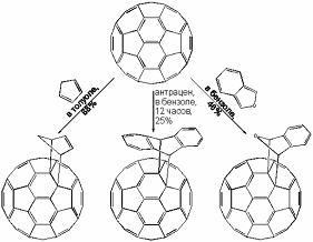 фуллереновой сферы являются разнообразные реакции циклоприсоединения. В силу