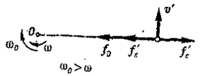 перпендикулярна до осі обертання і обертається разом із спостерігачем з кутовою