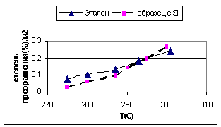катализатора значительно выше, чем у эталона. Введение кремния не сильно влияет