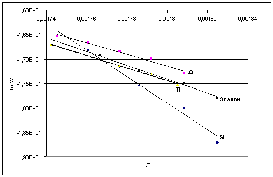 титаном идут практически параллельно с эталоном. Значит предэкспоненциальный