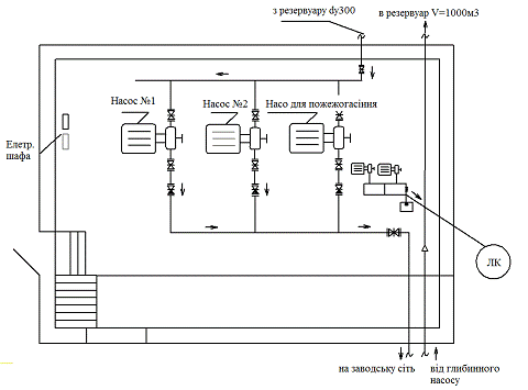 водопостачання трьома насосами типу КМ 100-80-160 з ступеневим їх регулюванням.