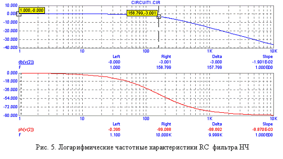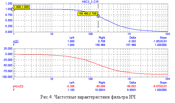 характеристики ФНЧ для R = 1 кОм, и С = 1 мкФ.