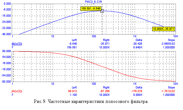 . Нарисуйте АЧХ полосового фильтра. Чему