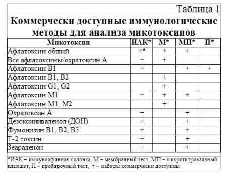 определения микотоксинов сложны, трудоемки и не отвечают запросам массового