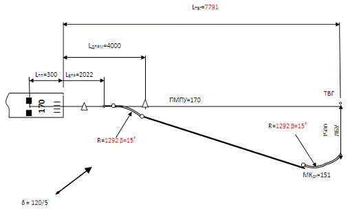 вычертить схему движения ВС, обозначить участки траектории, соответствующие
