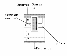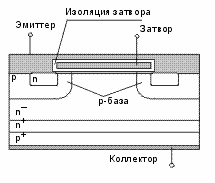 Схематичный разрез структуры IGBT показан на