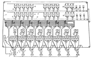 ручка; 12 - выступ; 13 - плита стальная; 14 - площадка; 15 - рычажок; 16- Штифт