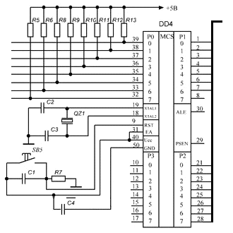кнопку SB1. К выводам порта Р0 подключены «подтягивающие» резисторы, которые