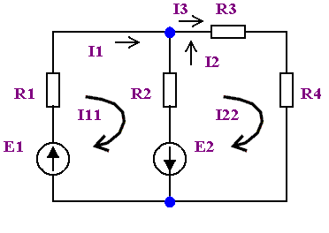 R22=R2+R3+R4=9;= E1+E2=15; E22= - E2=-5