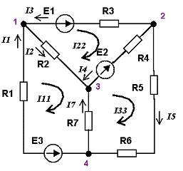 I1·R1-I2·R2=E1+E22·R2+I3·(R3+R4)=-E2