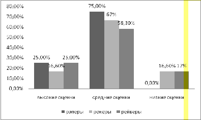 представителями музыкальных субкультур- рокеров, рейверов, хип-хоп.