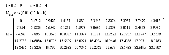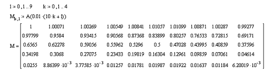 Представим ФЧХ в виде таблицы 5 на 10 элементов: