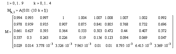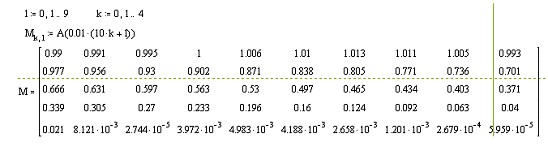 погрешность в виде таблицы 5 строк на 10 столбцов.