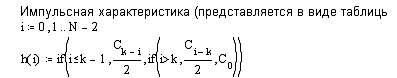 определенной импульсной характеристике построить таблицу. Т.к. в нашем случае