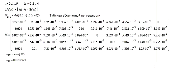 аппроксимации (посчитать абсолютную погрешность). Значения АЧХ И ФЧХ