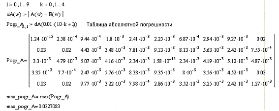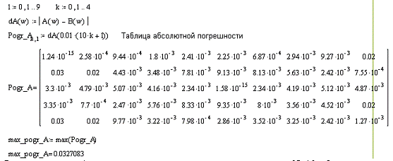 Для этого представим абсолютную погрешность в виде таблицы 5 строк на 10