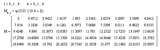 Представим ФЧХ в виде таблицы 5 на 10 строк: