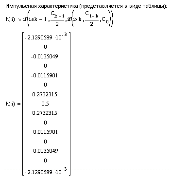 Рассчитаем импульсную характеристику фильтра: