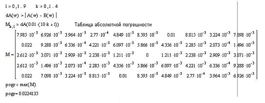 Для этого представим абсолютную погрешность в виде таблицы 5 на 10