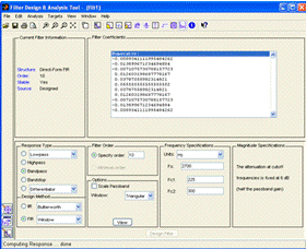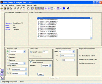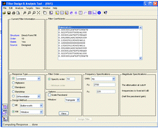 форме) расчетные и вычисленные с помощью программы Matlab коэффициенты фильтра,