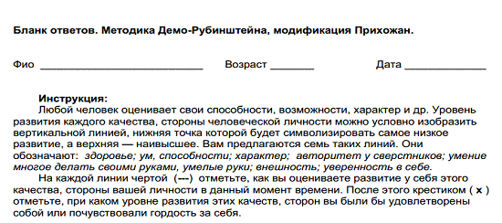 Т.Дембо и С.Я. Рубинштейн модификация А.М. Прихожан