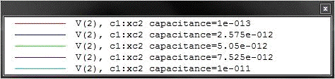 емкости переменного конденсатора С с применением функции Parameter Sweep