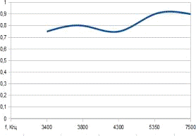 на диапазоне от 3,2 МГц до 7,5 МГц.