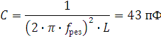 емкости С я взял 100 пФ. Это значение соответствует резонансной частоте 3,2