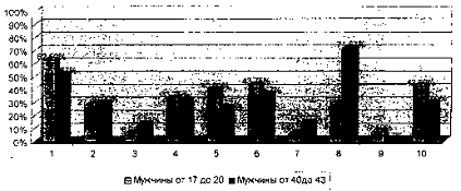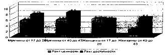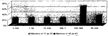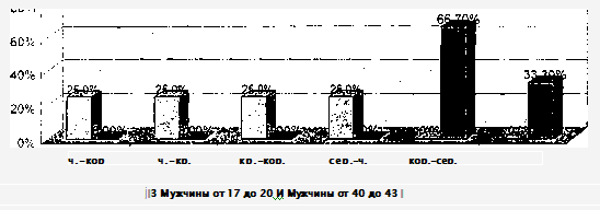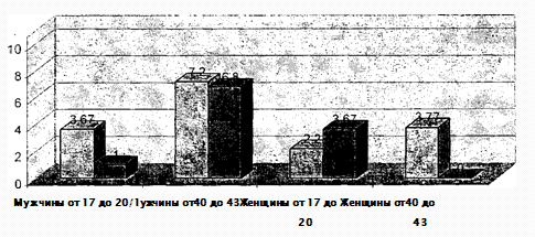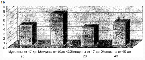 возрастных категорий (от 17 до 20 лет и от 40 до 43 лет).