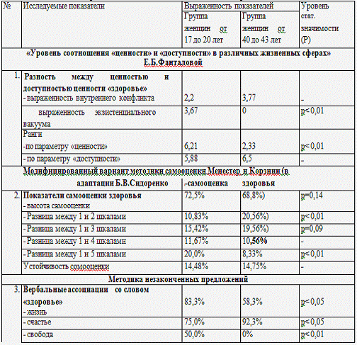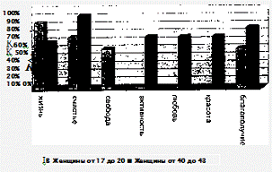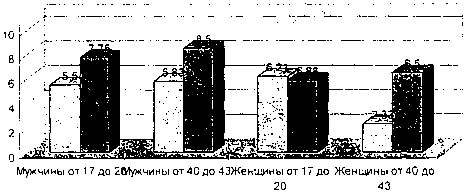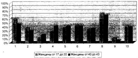 женщин двух возрастных групп (от 17 до 20 лет и от 40 до 43 лет).