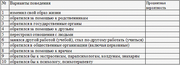 событий и соотнесения их к основным жизненным сферам);7)Методика диагностики