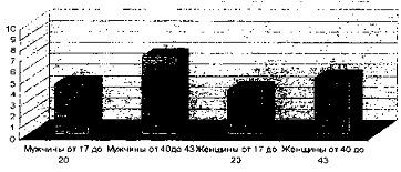 бизнеса. Вторую возрастную группу - от 40 до 43 лет составили мужчины (9