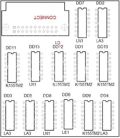 позволил выделить следующие элементы серии 155: К155ТМ2, К155ЛА3, К155ЛЕ1,