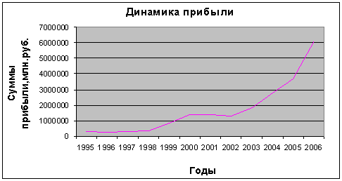 по 1996г. и с 2000г. по2002г. В остальные периоды динамика прибыли
