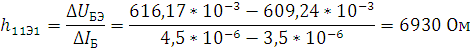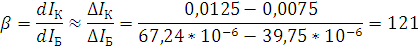 b = ΔIК/ΔIБ - дифференциальный коэффициент передачи тока базы, ΔIК и ΔIБ определяются по выходной характеристике