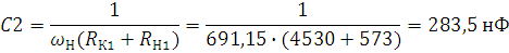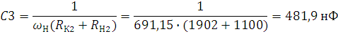 Выберем отрицательный корень kβ=-0,481 и находим коэффициент усиления разомкнутого усилителя: