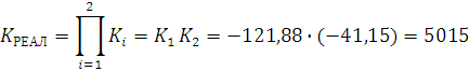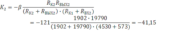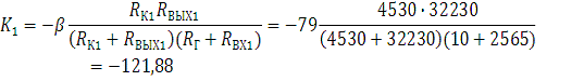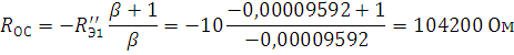 Выберем отрицательный корень kβ=-0,038 и найдем коэффициент усиления разомкнутого усилителя: