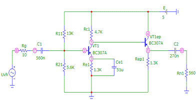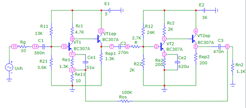 Фиксация рабочей точки осуществляется сопротивлениями R12