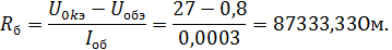 напряжением U0kэ = 24В, током I0к = 17.4мА. Тогда по графику входные ВАХ (приложение C рисунок 7)определим напряжение U0бэ , если ток I0б = I0к/h21э = 0,0174/50 = 0,0003 = 3мА, при h21э = (h21эmin * h21эmax)-1/2 = 50. U0бэ = 0,8В. каскад усилитель